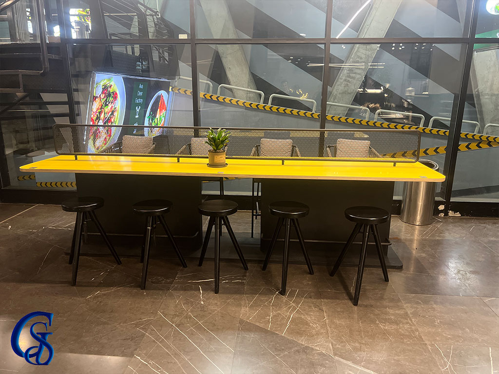 • مشاوره طراحی و استفاده از متریال، ساخت واجرای( میز سرو کافه)