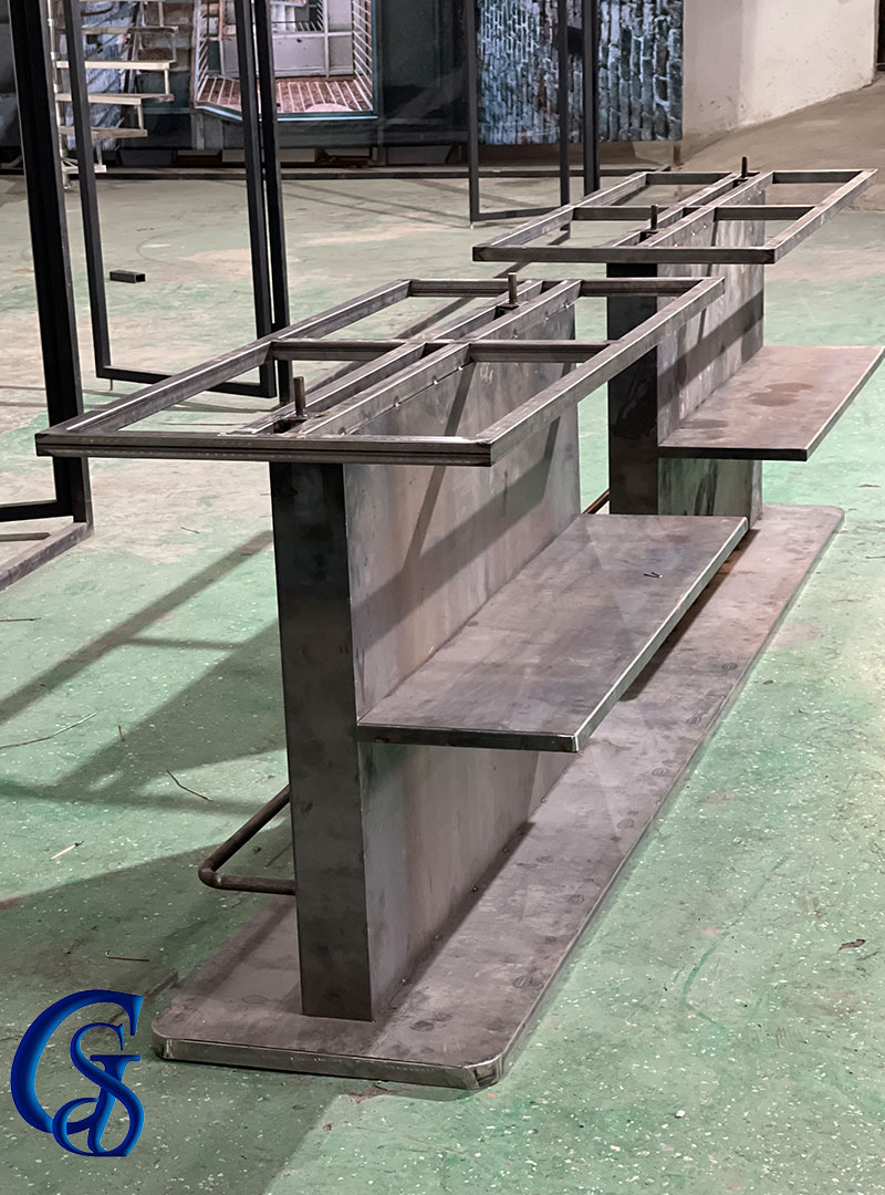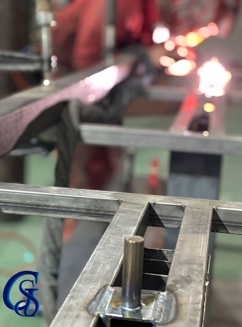 برای اتصال پایه و ستون های زیرین از جوشco2 زنجیری و برای پایه ها و سطح ستون ها از جوش آرگون + فیوز استفاده شده است.