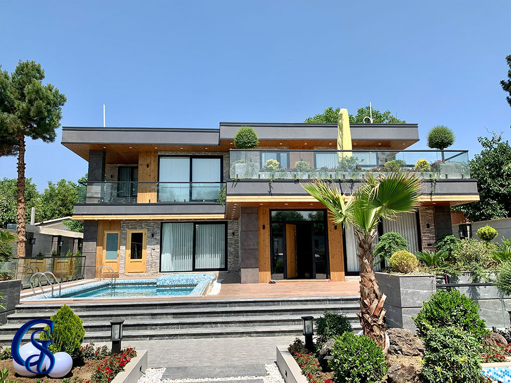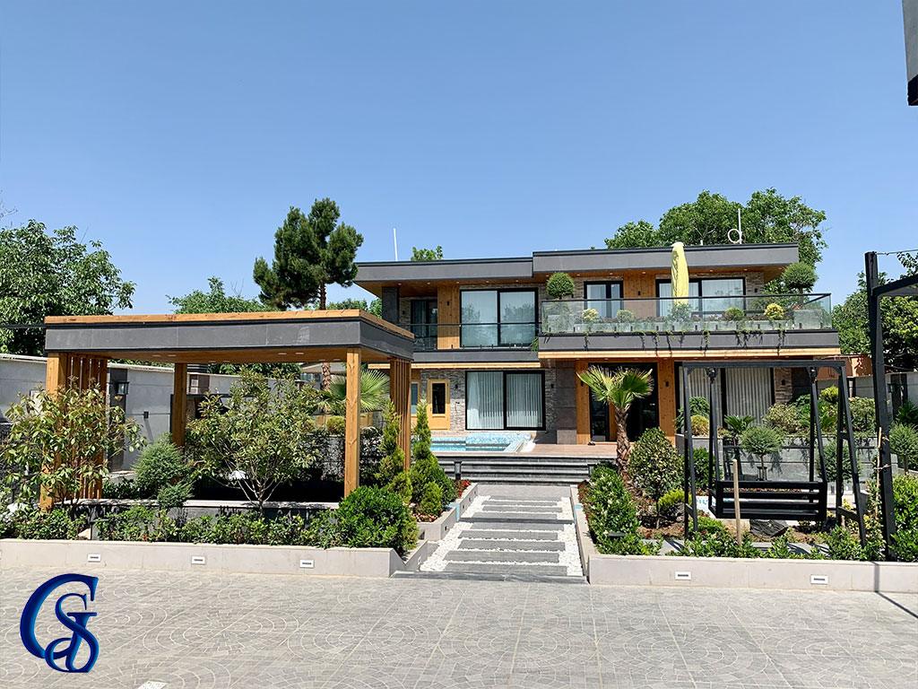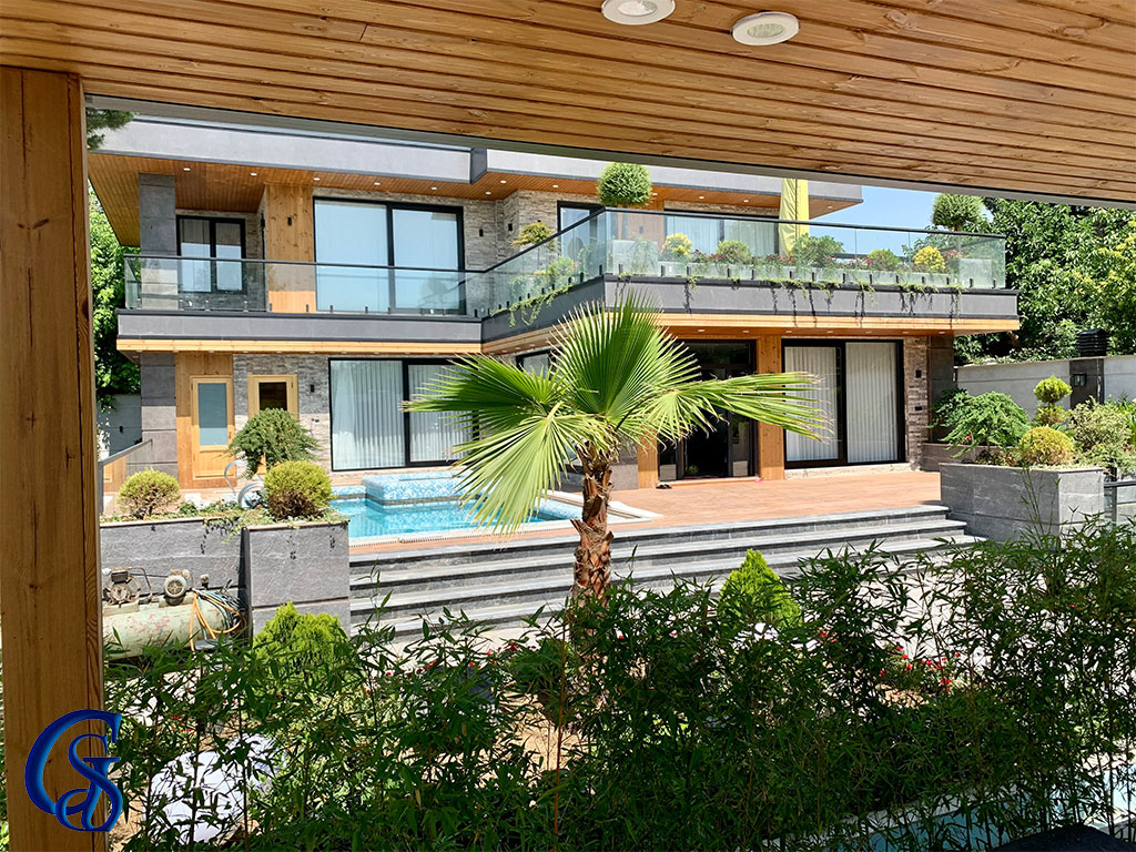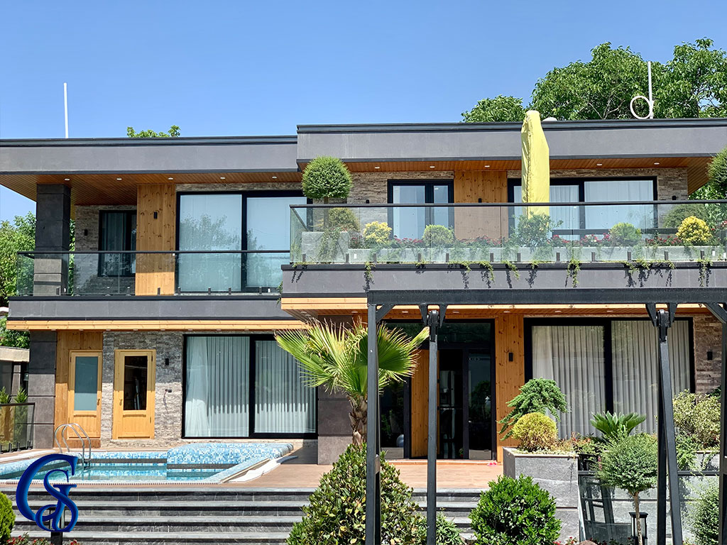طراحی نردههای بیرونی (جانپناه تراس و محوطه حیاط) به گونهای انجام گرفته است که با طراحی کلی نما کاملاً همسو و یکپارچه باشد. علاوه بر نردههای شیشهای لمینت شده ( ۲ لایه ۶ میل) علاوه بر استحکام و مقاومت بالا و تامین ۱۰۰% امنیت جانی به واسطه پایههای نگهدارنده اسپیگت شیشه برند GS و اجرای هندریل کلاف شده تا هم نمای این عمارت باشکوه و هم منظره بیرون ساختمان ( ویو) در یک قاب جذاب و بدون مزاحمت بصری (پایه،ستون،اتصالات) از هر جای عمارت قابل رویت باشد و برای لذت بردن از فضای حیات و بیرون عمارت نیازی به ایستادن نیست.