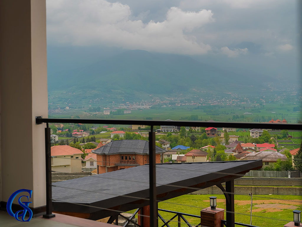 کف پله از چوب راش با رنگ پلی اورتان و طراحی و مولاسیون اختصاصی هندریل نرده‌ها و کاور فلاور باکس از همین چوب استفاده شده است تا با فضای طراحی آشپزخانه و فضای داخلی و نمای ساختمان همخوانی داشته باشد.