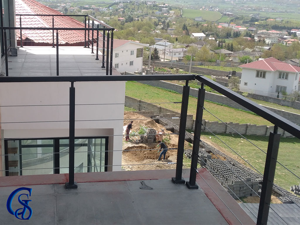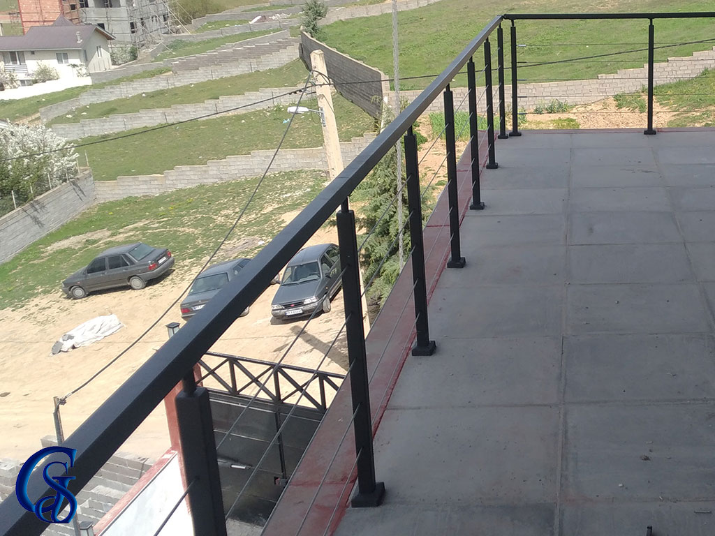 نرده (جان پناه) تراس نمای ساختمان با متریال سیم بلسل و یراق تمام استیل فولادی با رنگ کاملاً مقاوم با هر نوع شرایط آب و هوایی